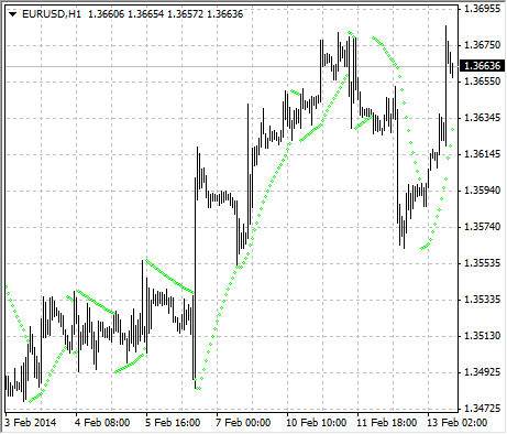 Технический индикатор Параболическая Система SAR (Parabolic SAR) был разработан для анализа трендовых рынков. Индикатор строится на ценовом графике. По своему смыслу данный индикатор аналогичен скользящей средней, с той лишь разницей, что Parabolic SAR движется с большим ускорением и может менять положение относительно цены. На «бычьем тренде» (Up Trend) индикатор располагается ниже цен, на «медвежьем» (Down Trend) — выше.